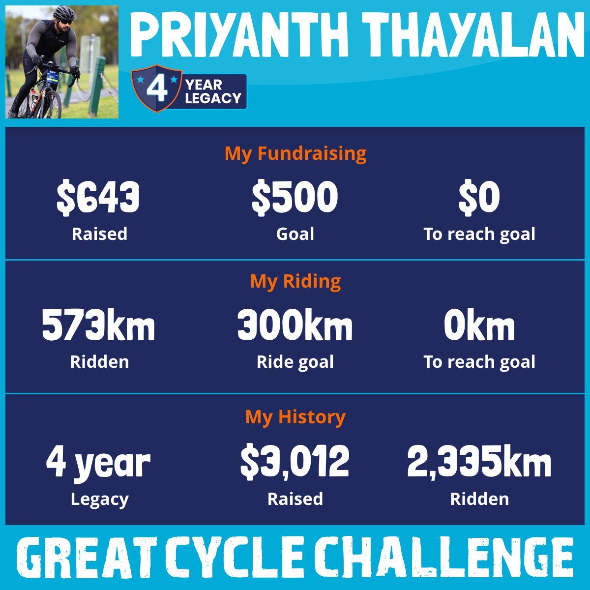 573 km Ridden$643 Raised2025