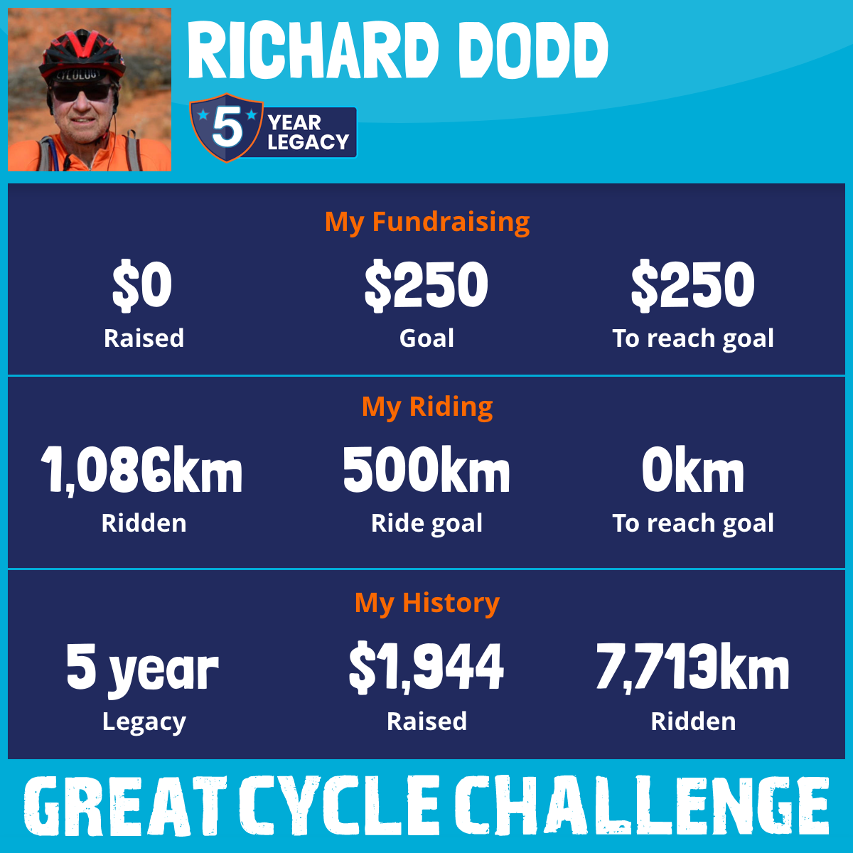 1,376 km Ridden$52 Raised2023
