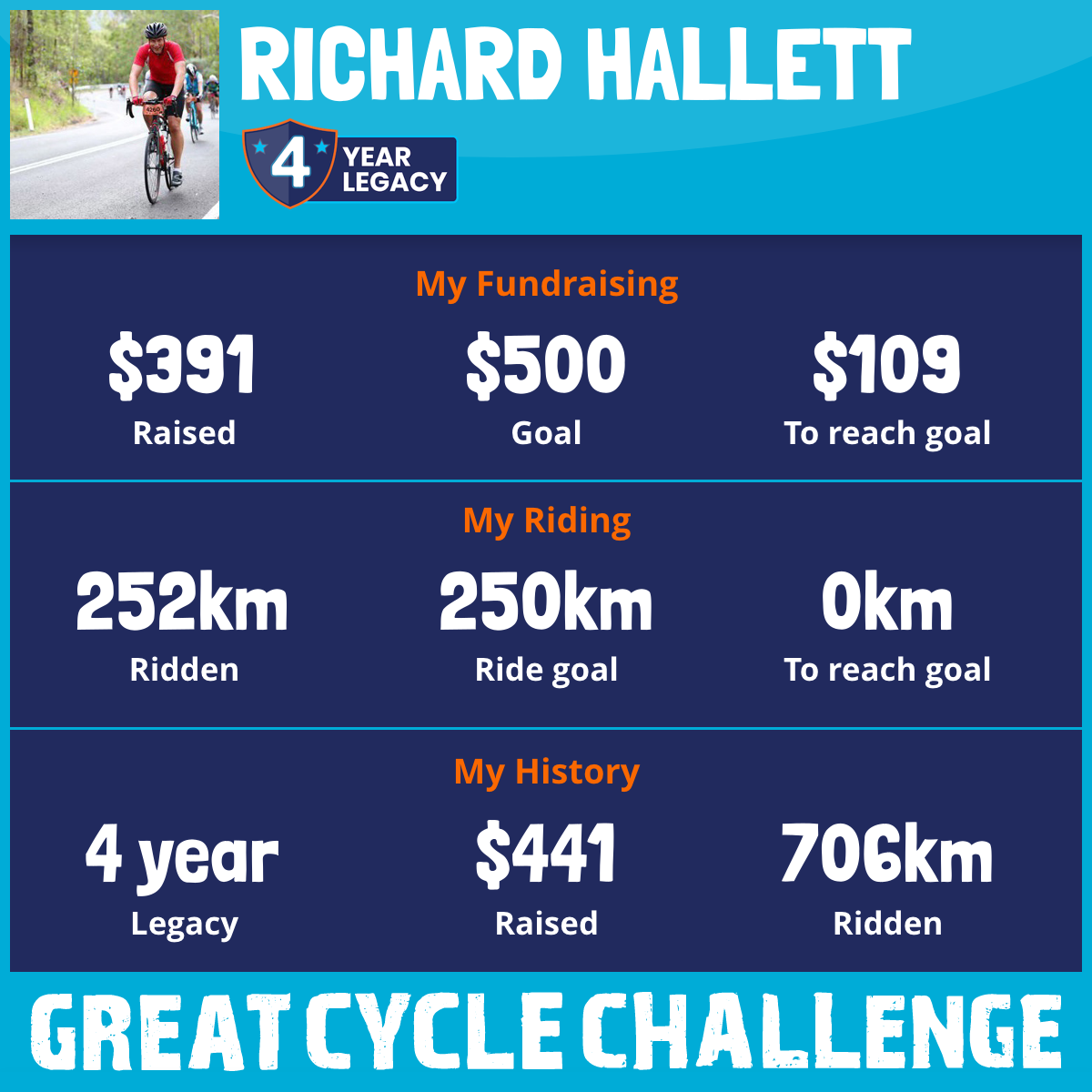 252 km Ridden$391 Raised2025