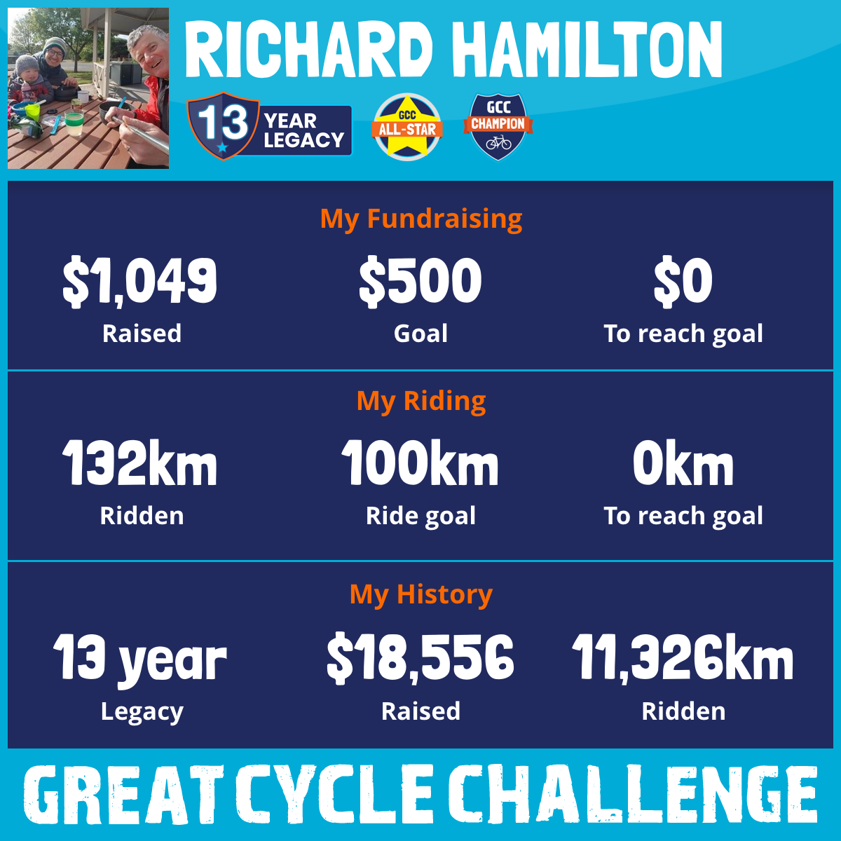 And so I am riding and raising funds to support the Children's Medical Research Institute to continue their work into the prevention, diagnosis, treatment and finding a cure for childhood cancer.