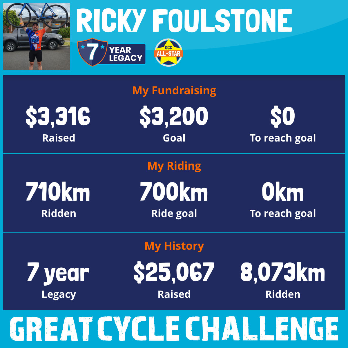 710 km Ridden$3,316 Raised2025