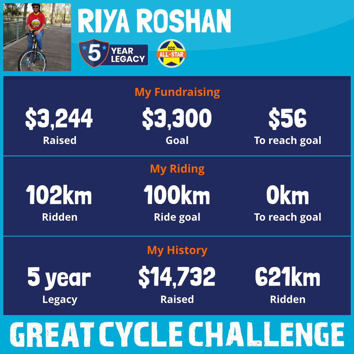 102 km Ridden$3,244 Raised2026