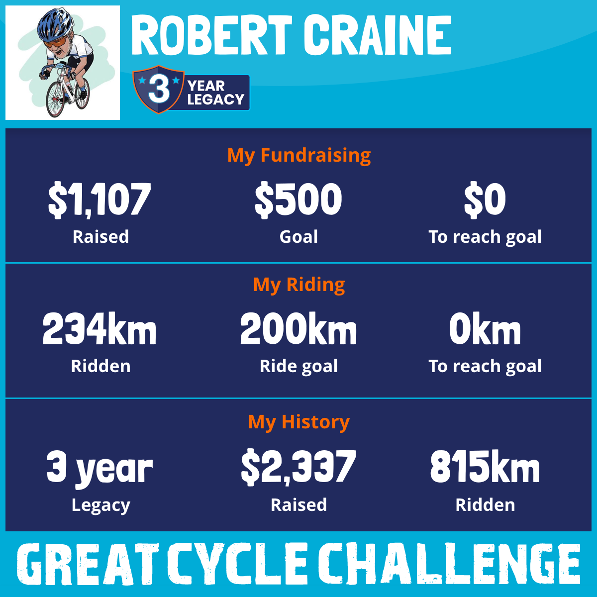 234 km Ridden$1,107 Raised2025