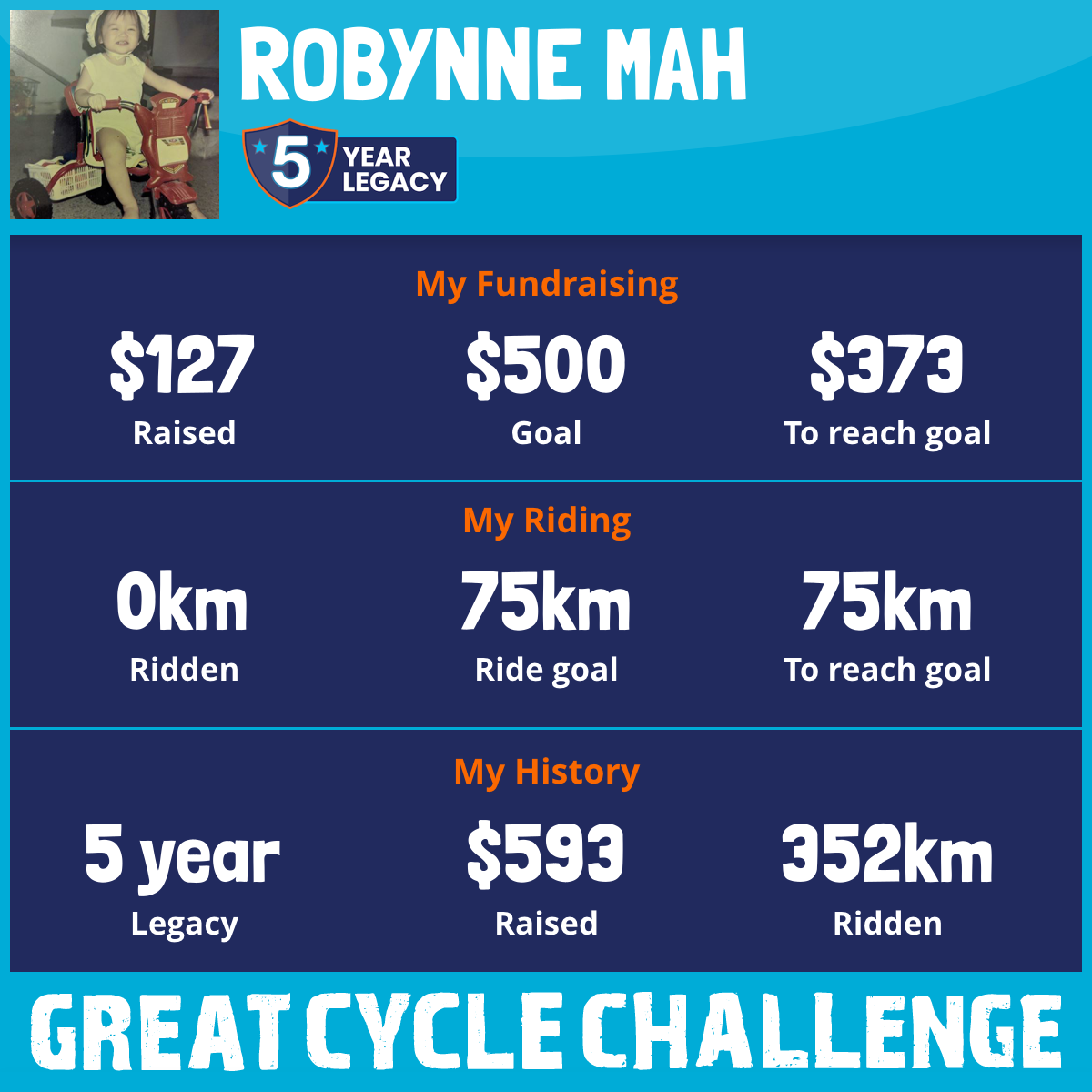 And so I am riding and raising funds to support the Children's Medical Research Institute to continue their work into the prevention, diagnosis, treatment and finding a cure for childhood cancer.