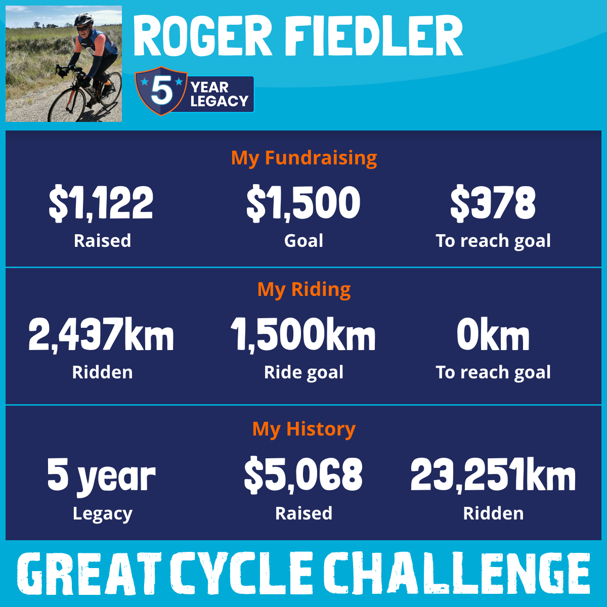 9,727 km Ridden$1,464 Raised2023