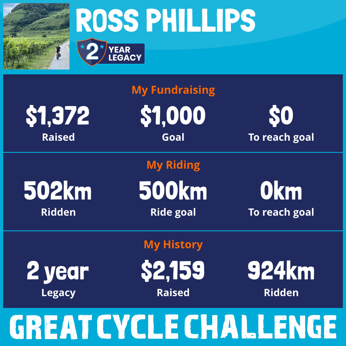 And so I am riding and raising funds to support the Children's Medical Research Institute to continue their work into the prevention, diagnosis, treatment and finding a cure for childhood cancer.