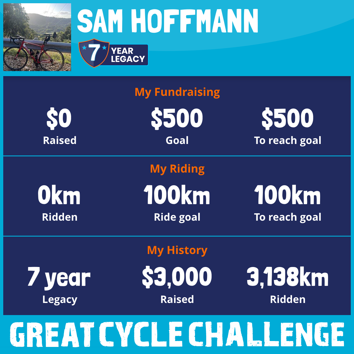 I've Ridden 0.0 km My goal is 100 km
