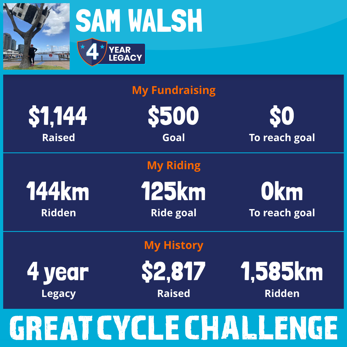 144 km Ridden$1,144 Raised2025