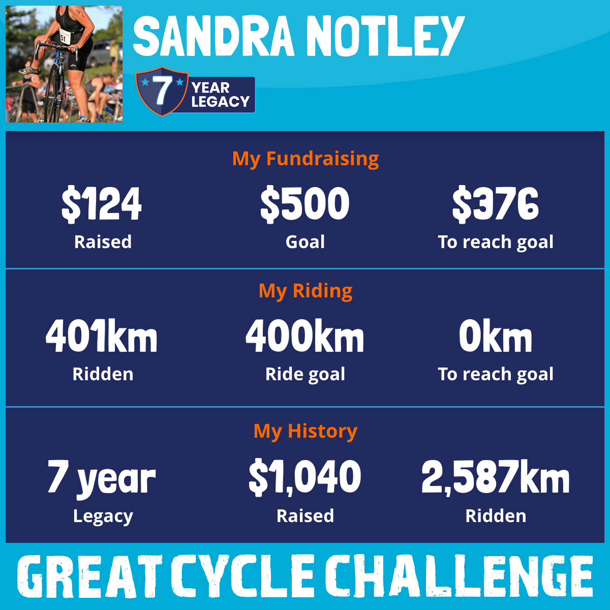 401 km Ridden$124 Raised2025