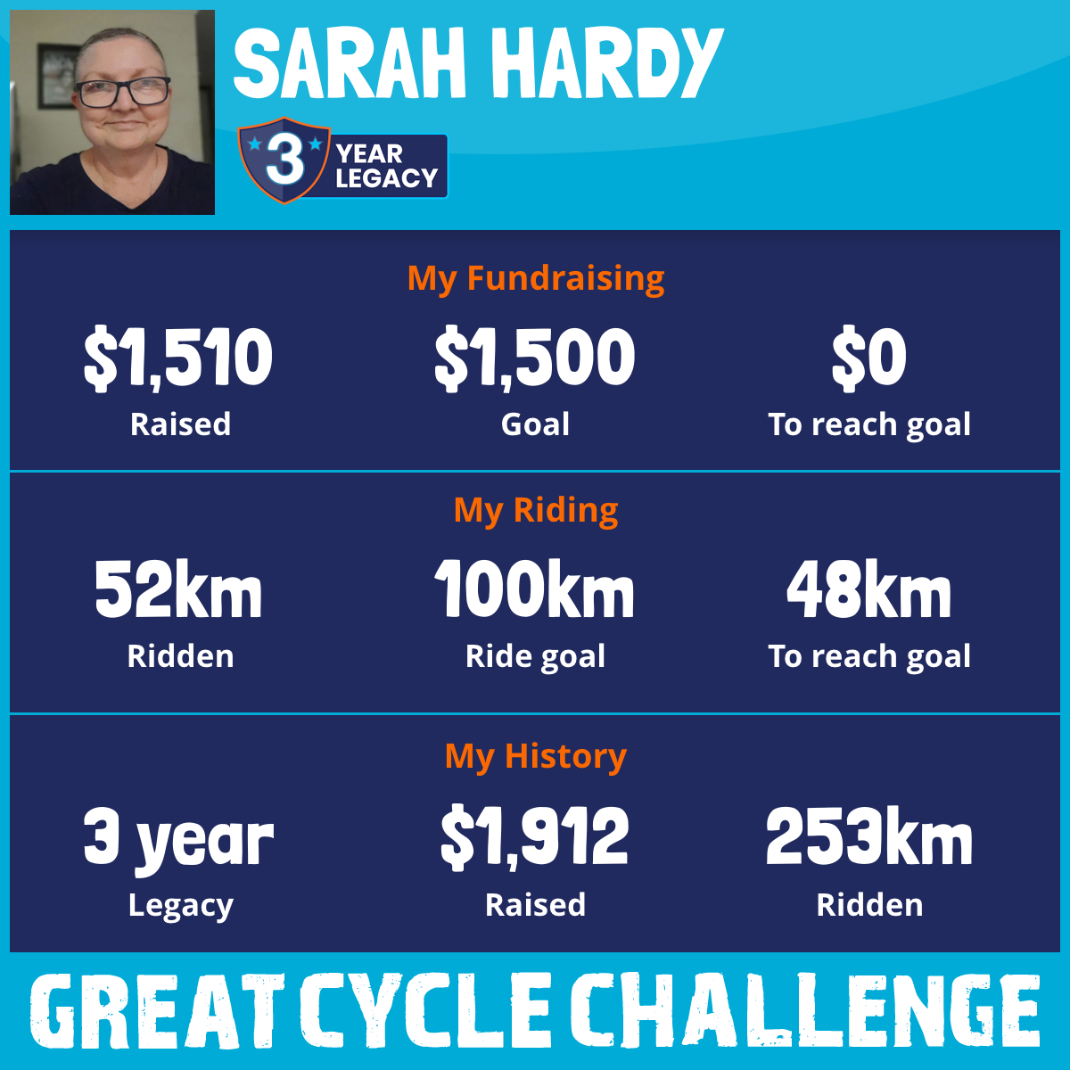 52 km Ridden$1,510 Raised2026