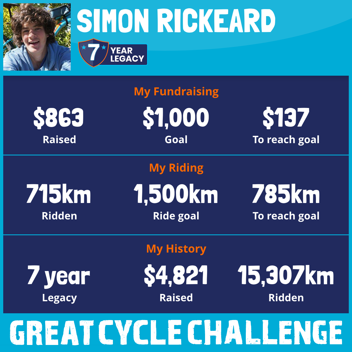 Hello This is my 7th Year doing the Great Cycle Challenge to fight kids' cancer!