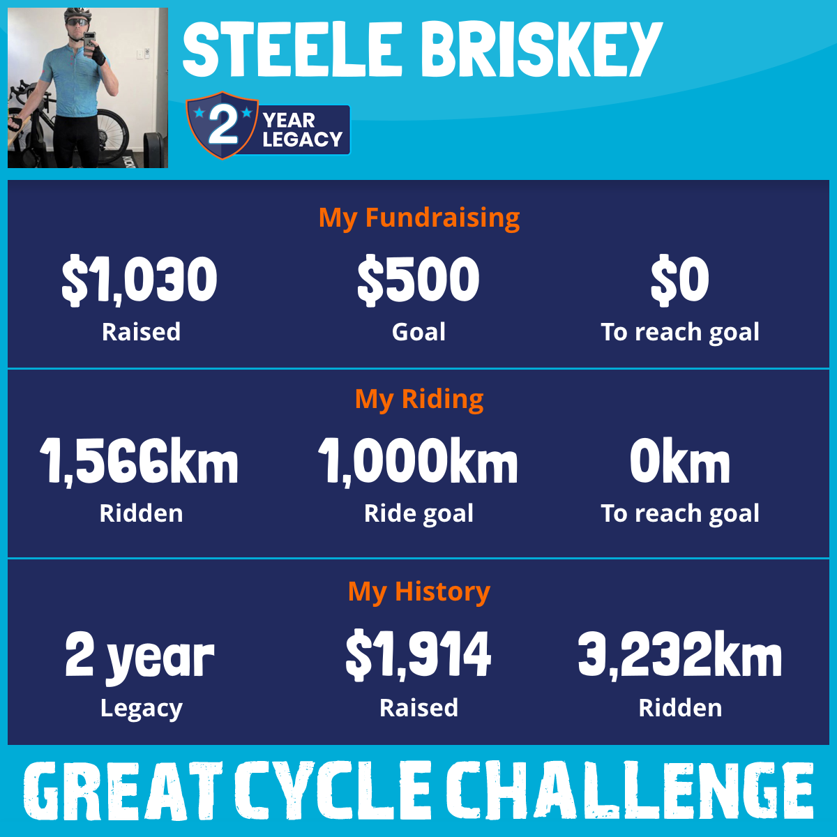 And so I am riding and raising funds to support the Children's Medical Research Institute to continue their work into the prevention, diagnosis, treatment and finding a cure for childhood cancer.