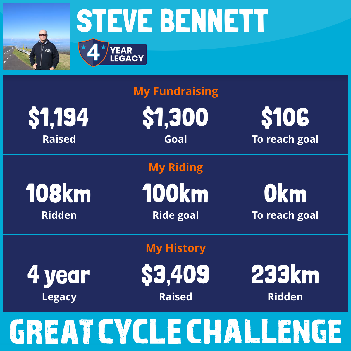 108 km Ridden$1,194 Raised2026