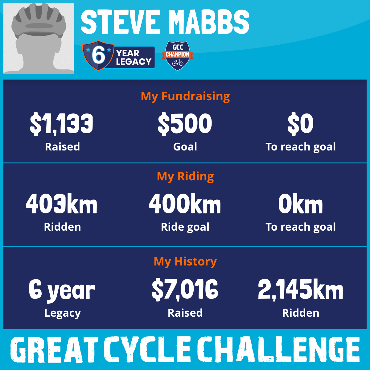 And so I am riding and raising funds to support the Children's Medical Research Institute to continue their work into the prevention, diagnosis, treatment and finding a cure for childhood cancer.