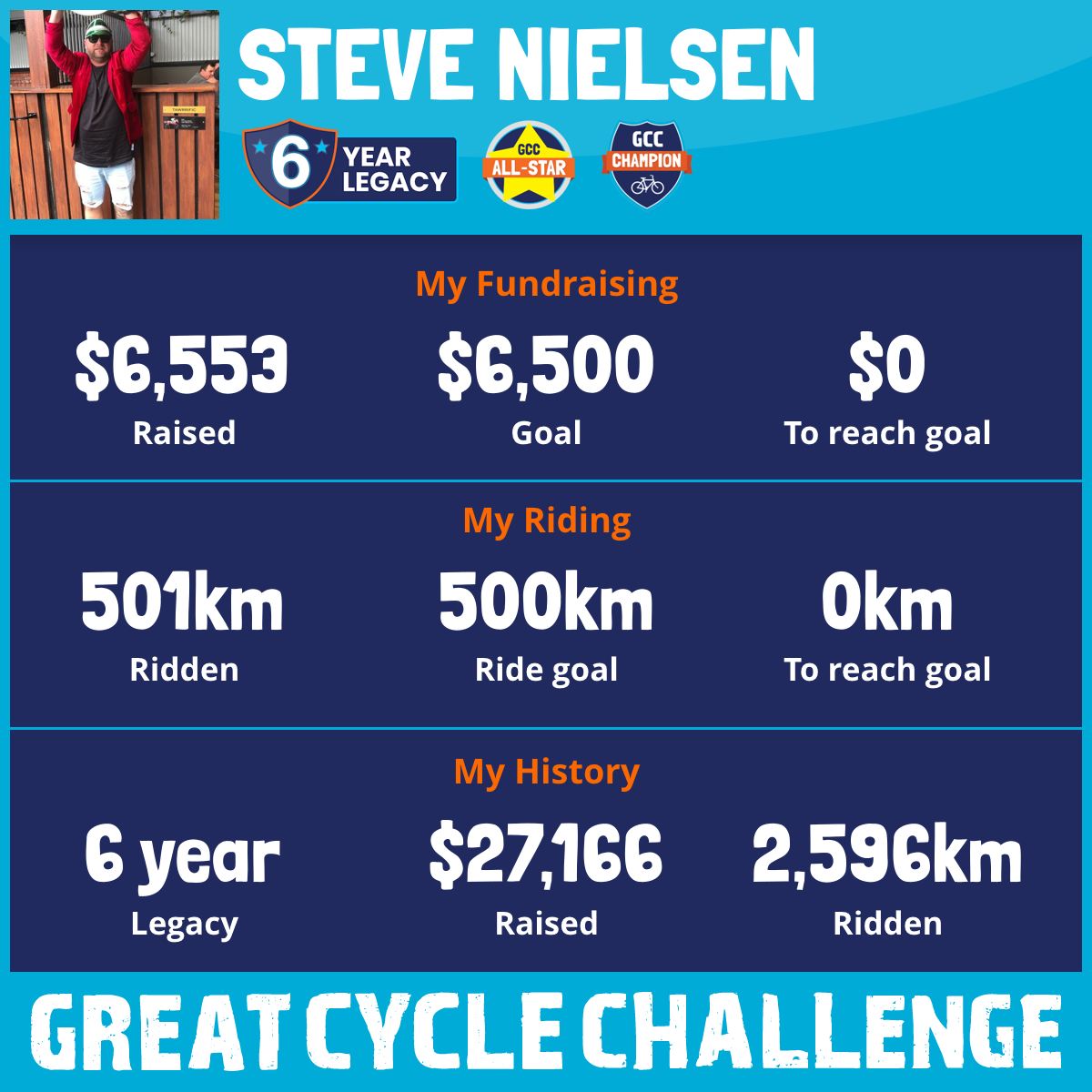 501 km Ridden$6,553 Raised2026