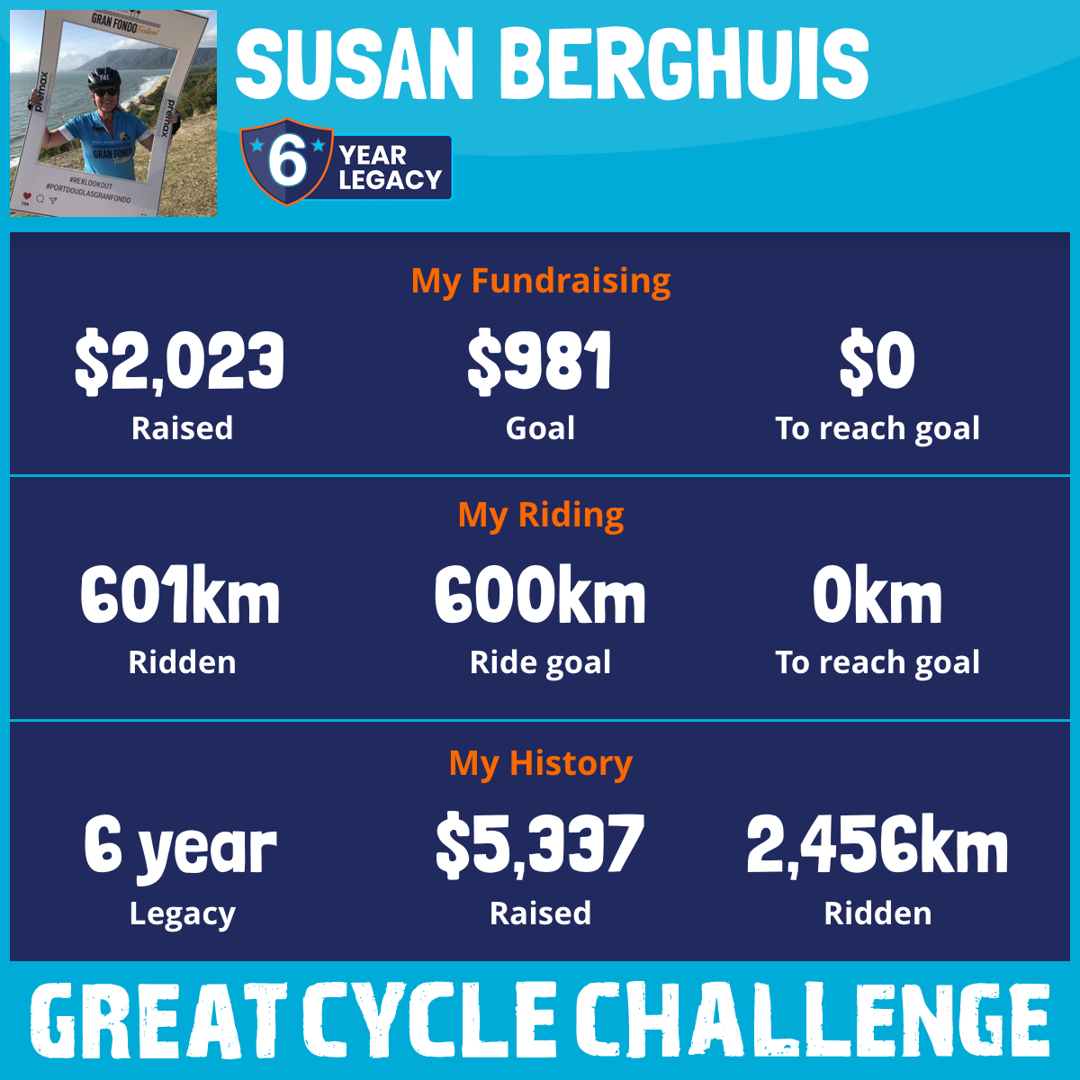 601 km Ridden$2,023 Raised2025