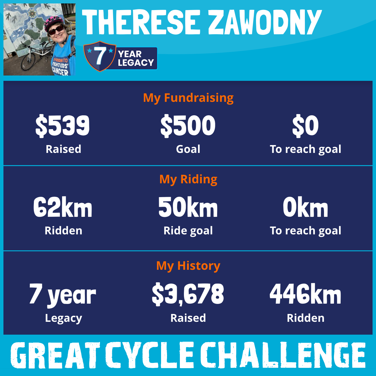 And so I am riding and raising funds to support the Children's Medical Research Institute to continue their work into the prevention, diagnosis, treatment and finding a cure for childhood cancer.