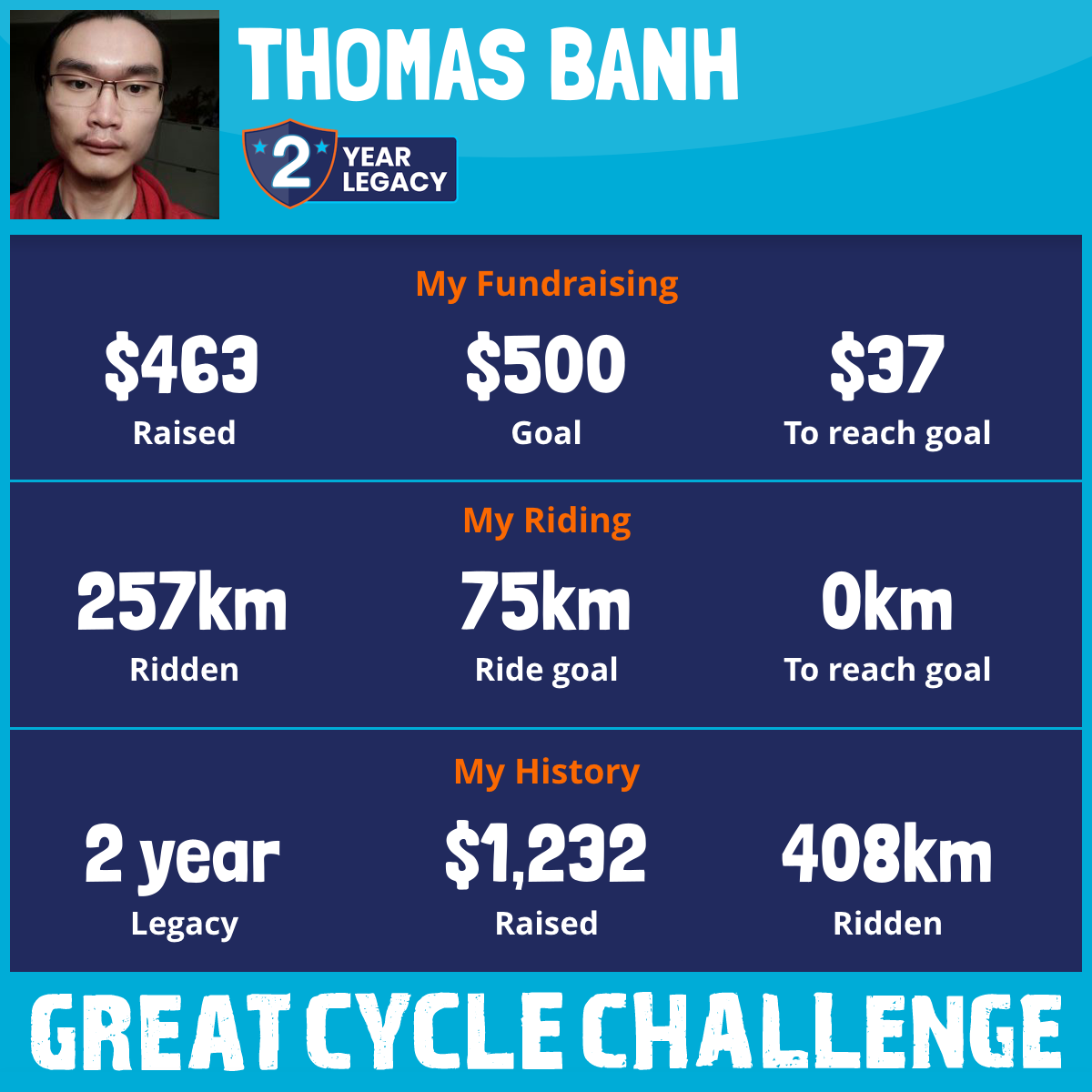 257 km Ridden$463 Raised2025