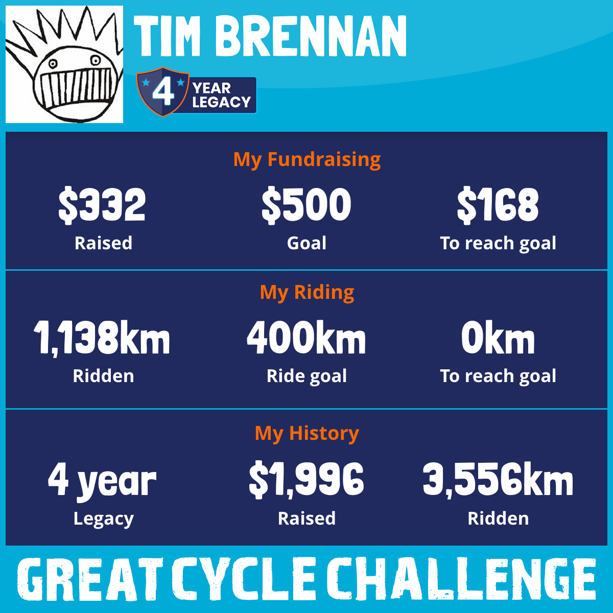 1,138 km Ridden$332 Raised2025
