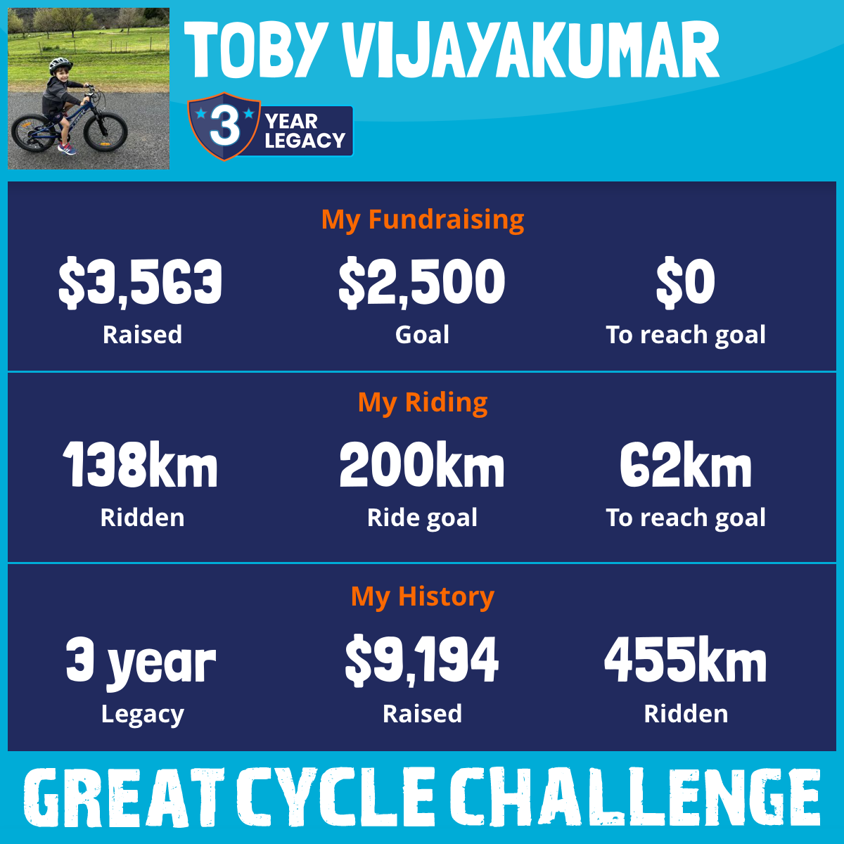 138 km Ridden$3,563 Raised2026