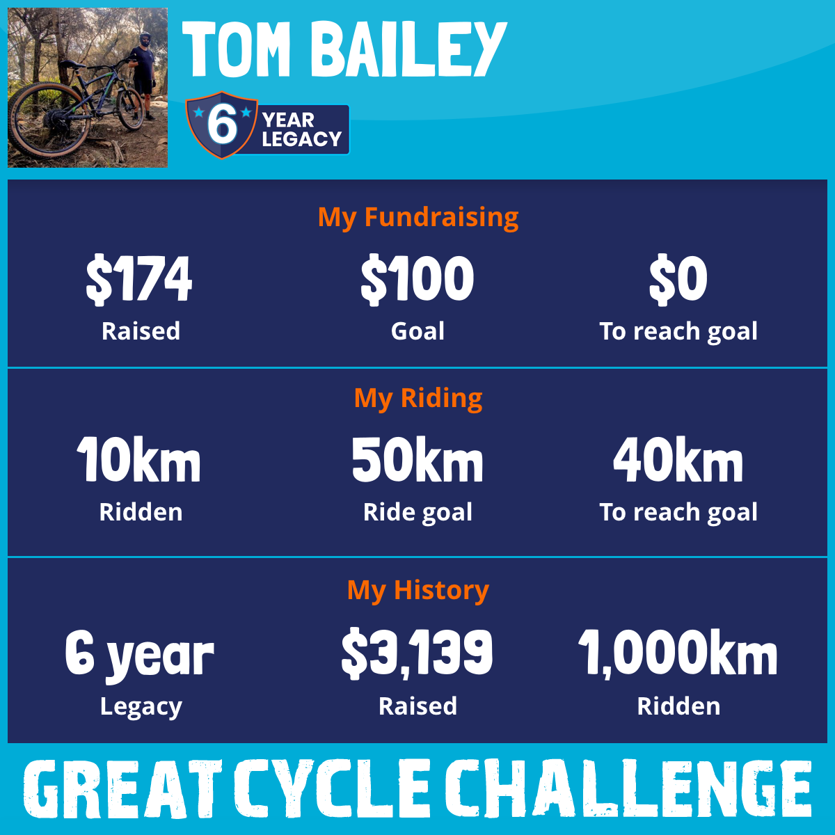 Another year another cycle challenge! This time the goal is 250km within October and to raise $250 for kids cancer. All donations automatically go straight to Children's Medical Research 🤙