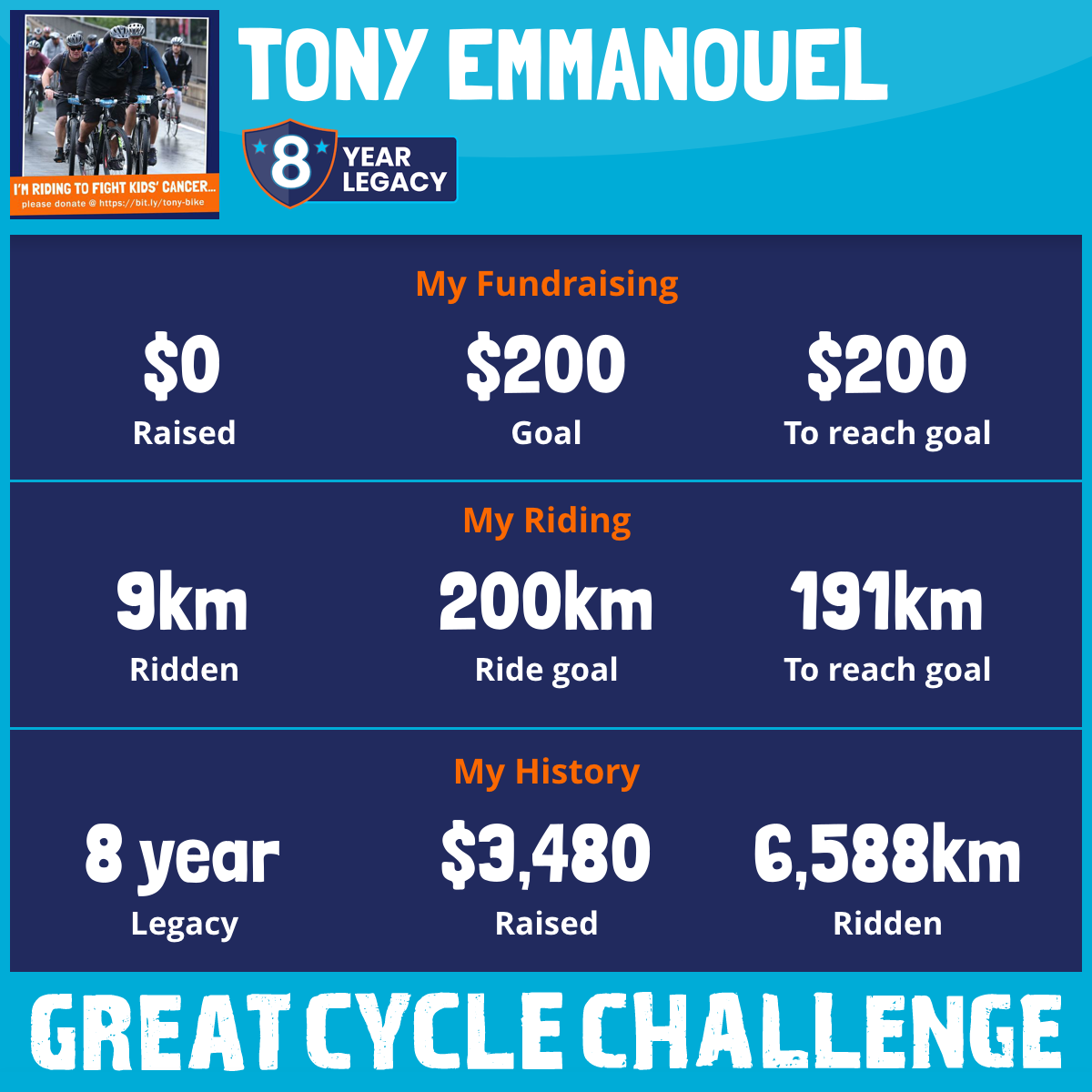 And so I am riding and raising funds to support the Children's Medical Research Institute to continue their work into the prevention, diagnosis, treatment and finding a cure for childhood cancer.