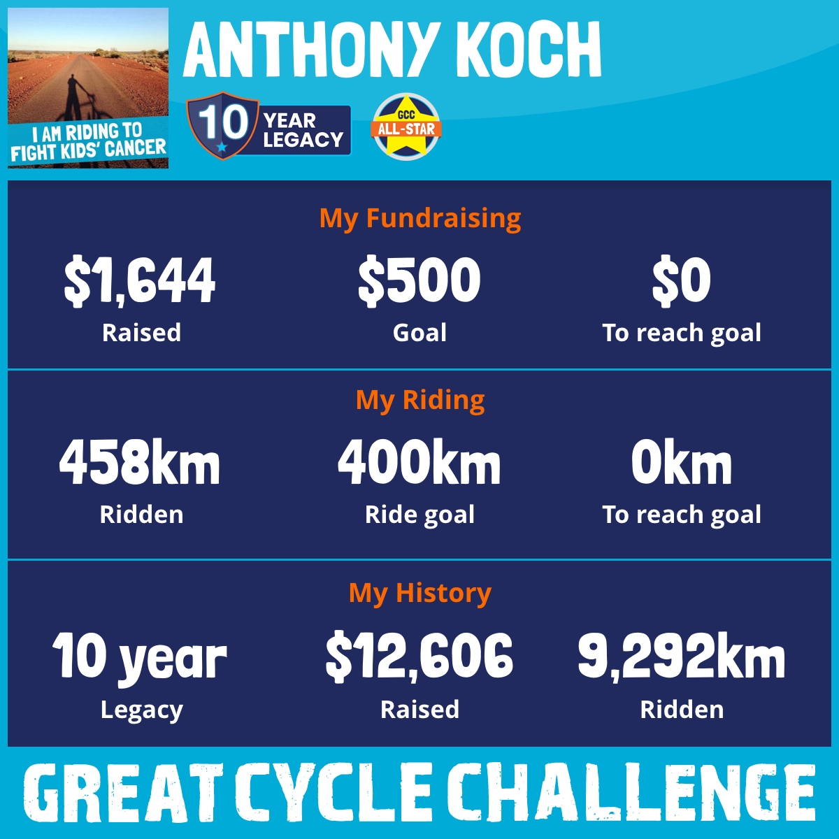 And so I am riding and raising funds to support the Children's Medical Research Institute to continue their work into the prevention, diagnosis, treatment and finding a cure for childhood cancer.