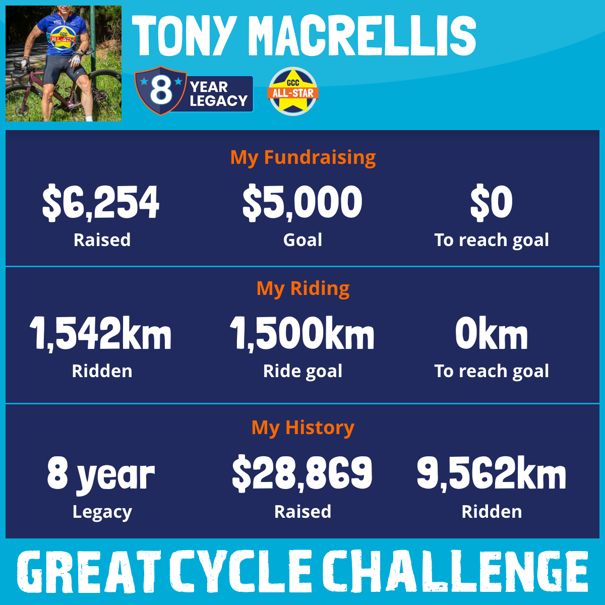 This October marks my eighth year riding in the Great Cycle Challenge in support of the Children's Medical Research Institute—and once again, I’m asking for your support.