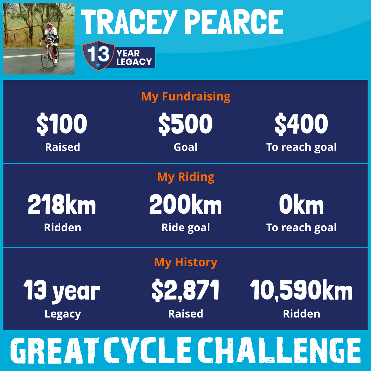I am riding 200 km for my friend, Olivia Newton John , Dianne Seedsman, Magda. Please sponsor me and support my challenge to fight kids' cancer and save little lives.