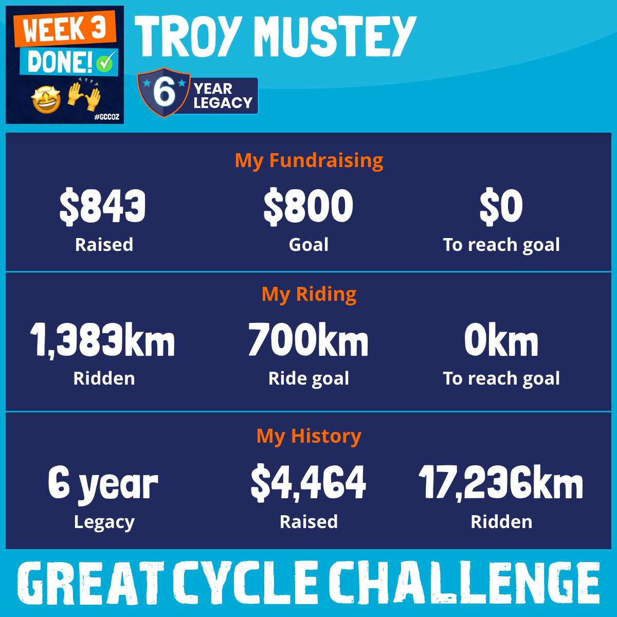 And so I am riding and raising funds to support the Children's Medical Research Institute to continue their work into the prevention, diagnosis, treatment and finding a cure for childhood cancer.