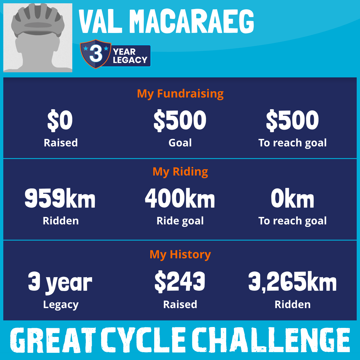 And so I am riding and raising funds to support the Children's Medical Research Institute to continue their work into the prevention, diagnosis, treatment and finding a cure for childhood cancer.