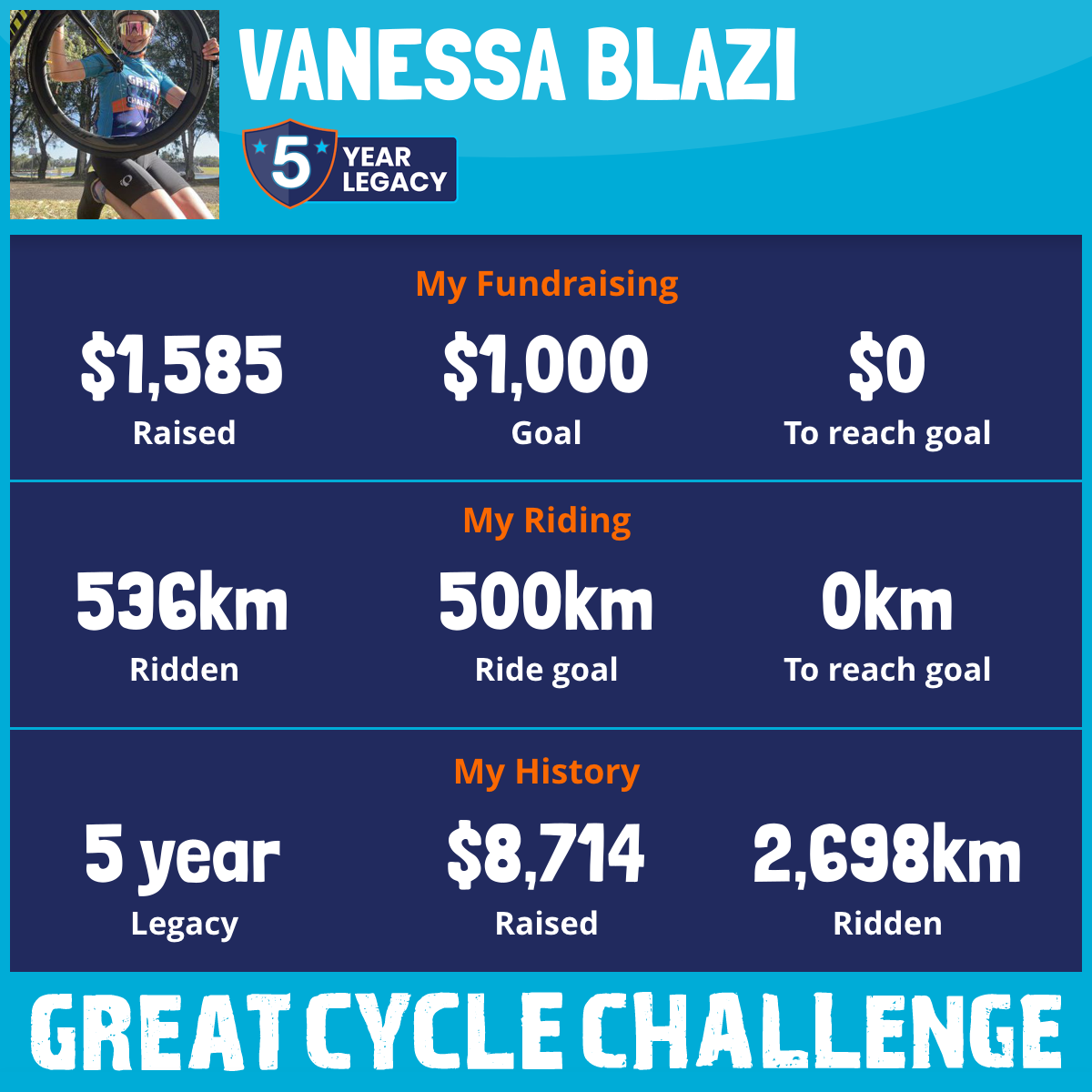 536 km Ridden$1,585 Raised2025