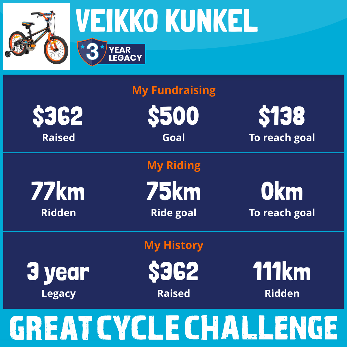 77 km Ridden$362 Raised2025