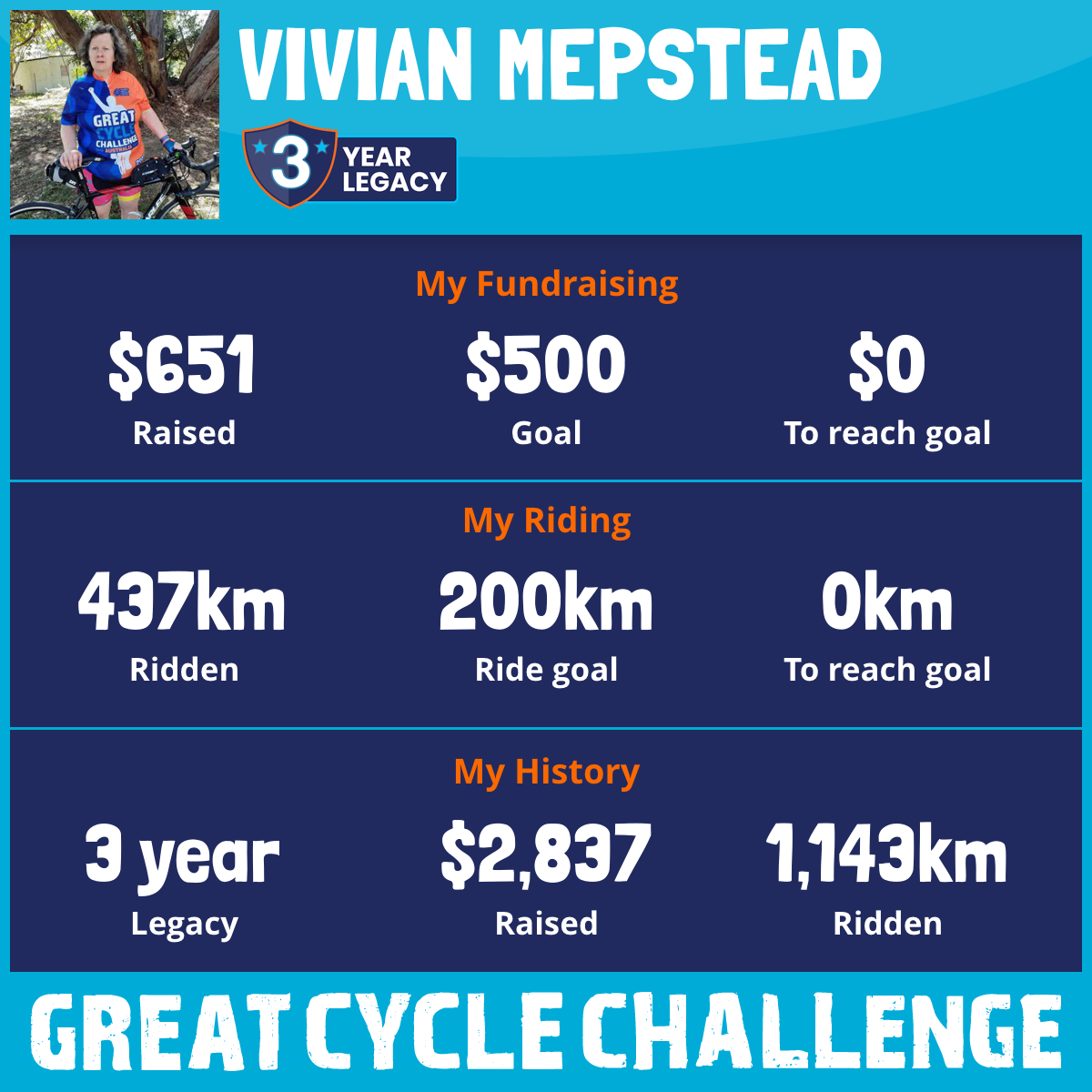 And so I am riding and raising funds to support the Children's Medical Research Institute to continue their work into the prevention, diagnosis, treatment and finding a cure for childhood cancer.