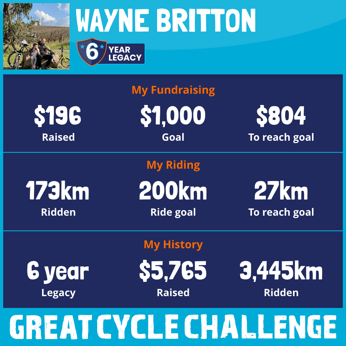 And so I am riding and raising funds to support the Children's Medical Research Institute to continue their work into the prevention, diagnosis, treatment and finding a cure for childhood cancer.