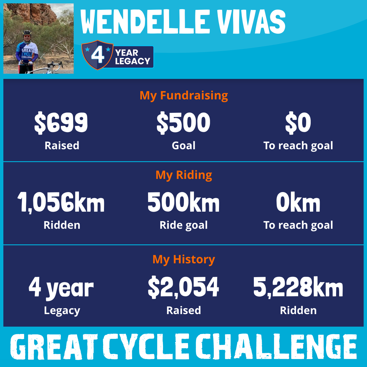 1,056 km Ridden$699 Raised2025