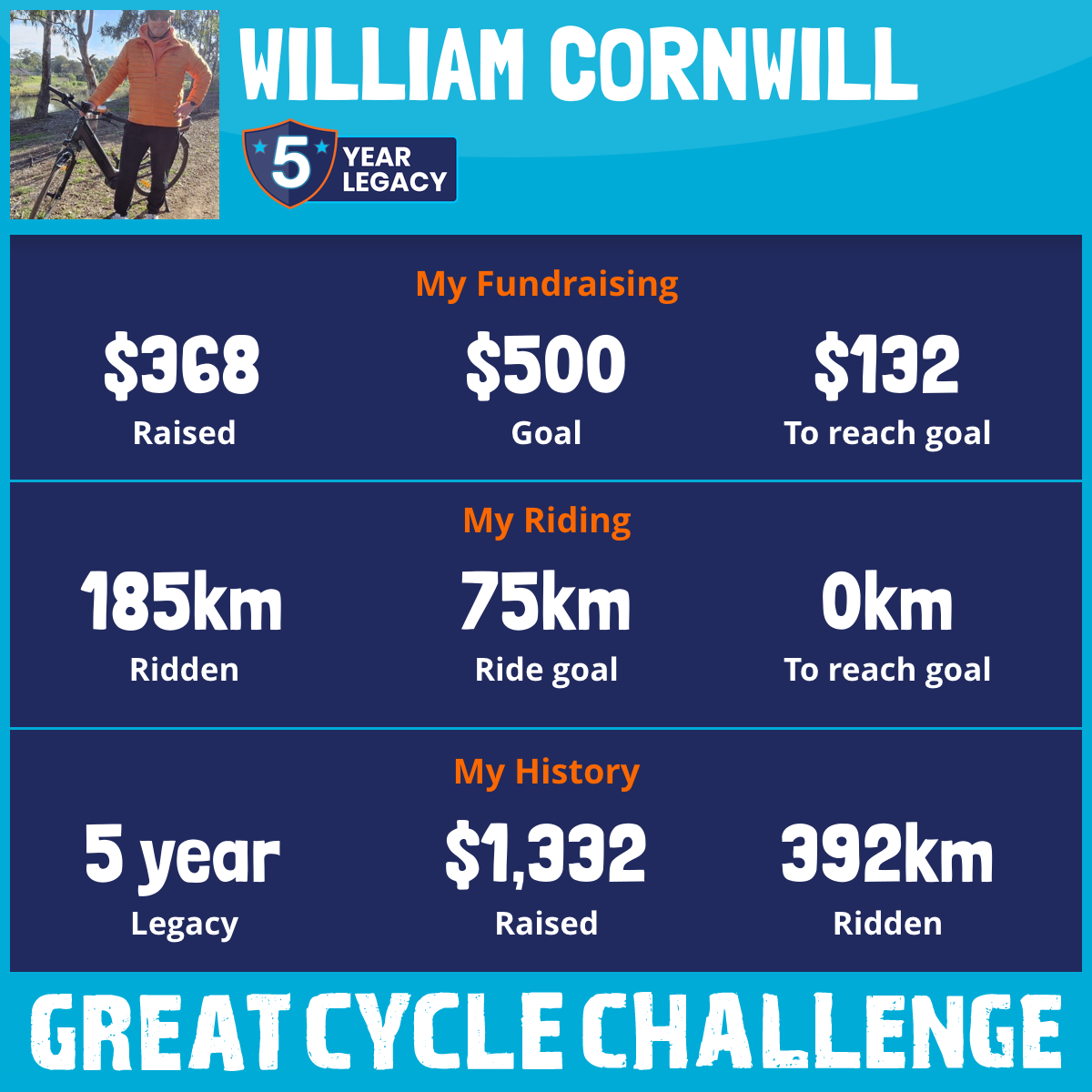 I am riding 75 km in memory of my late father Richard Cornwill. Please sponsor me and support my challenge to fight kids' cancer and save little lives.