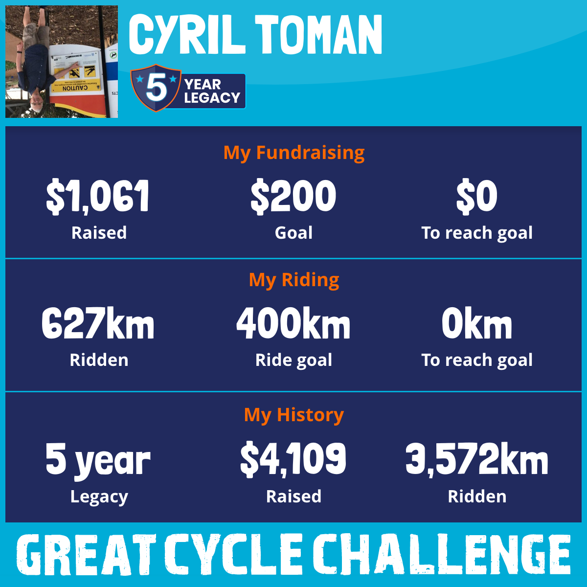 627 km Ridden$1,061 Raised2025