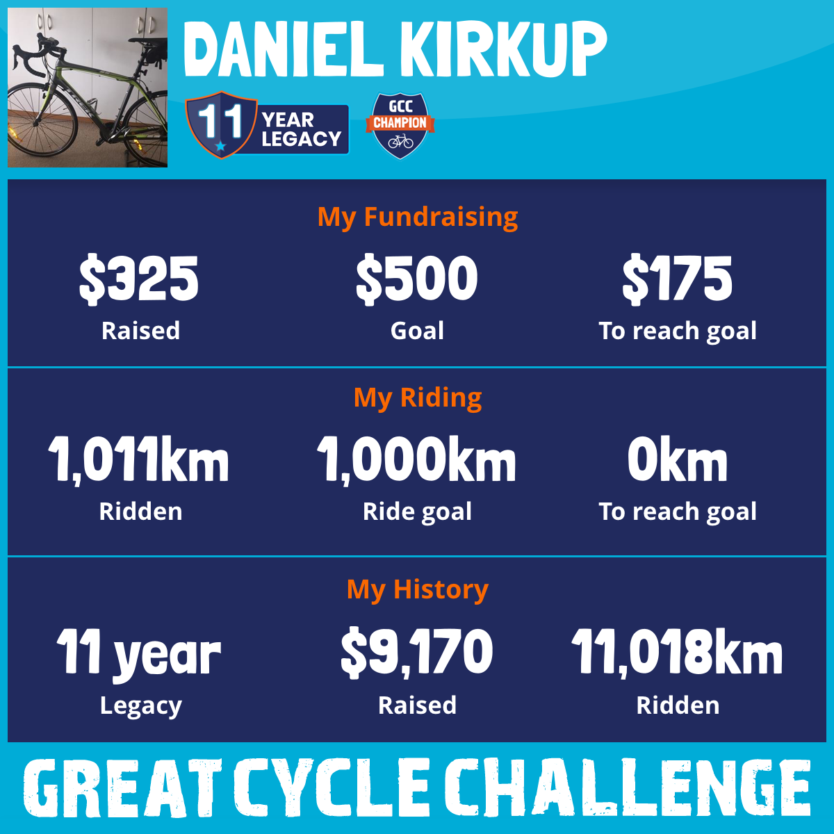 And so I am riding and raising funds to support the Children's Medical Research Institute to continue their work into the prevention, diagnosis, treatment and finding a cure for childhood cancer.